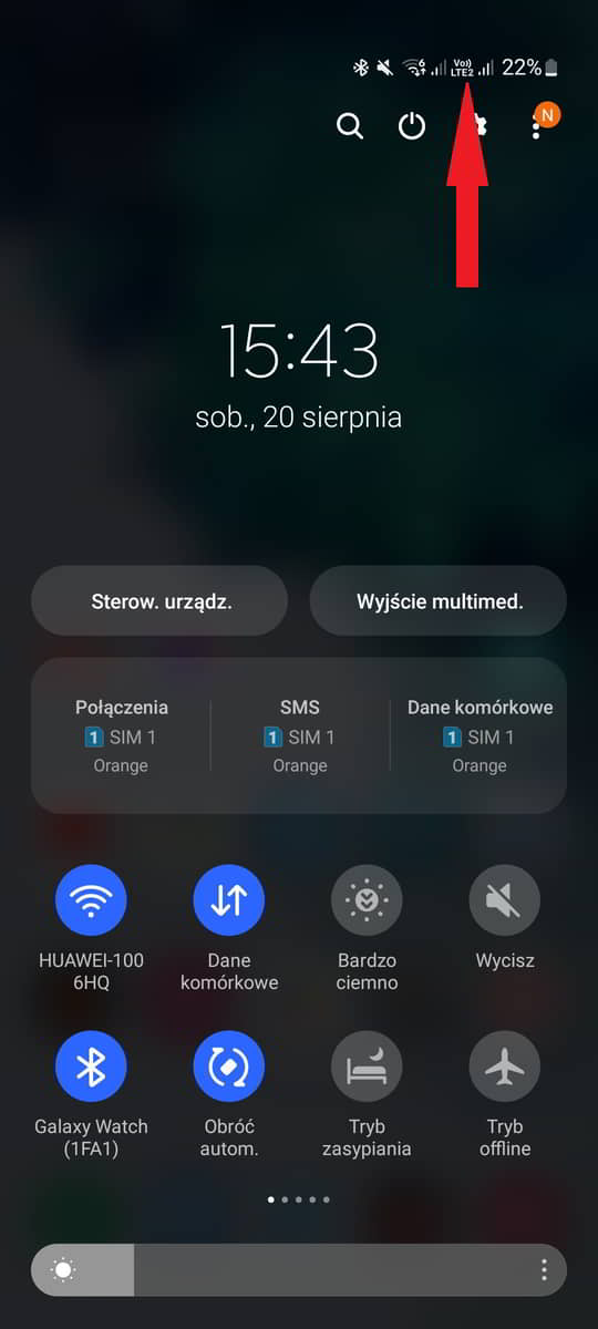 - Aby potwierdzić, że VoLTE działa, wykonaj połączenie testowe. Podczas połączenia na pasku stanu telefonu powinien być widoczny symbol LTE lub VoLTE.