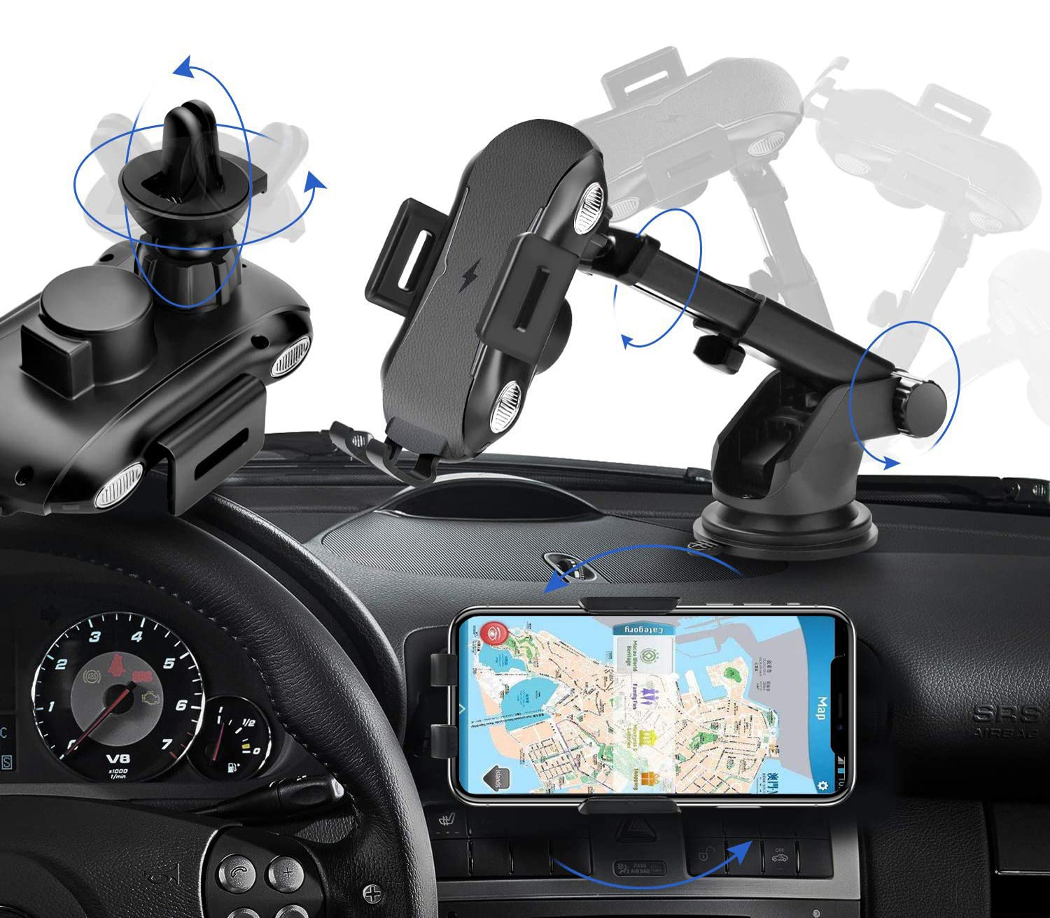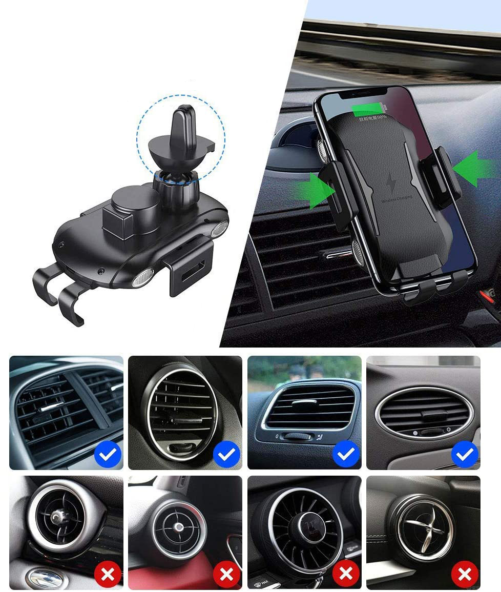 Uchwyt samochodowy z ładowaniem indukcyjnym posiada klips, który umożliwia stabilną instalację bezpośrednio w kratce wentylacji samochodu. Dzięki dwóm dostępnym ustawieniom zacisku, uchwyt można zainstalować niemal w każdym aucie. Dodatkowo, uchwyt posiada możliwość obrotu głowicy o 360 stopni, by obsługa telefonu była dla Ciebie najwygodniejsza.