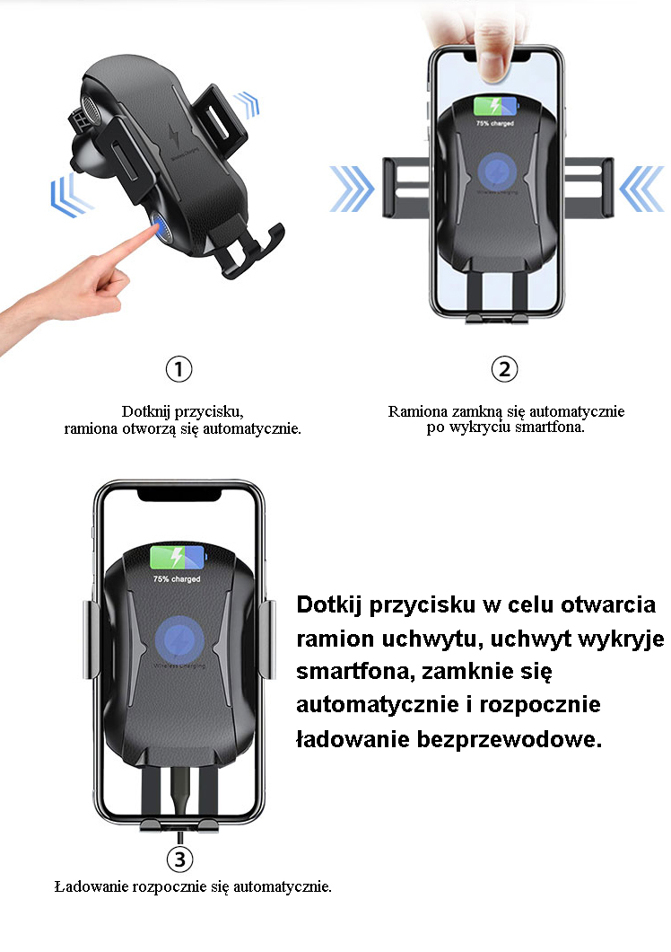 Automatyczny uchwyt samochodowy z ładowarką indukcyjną